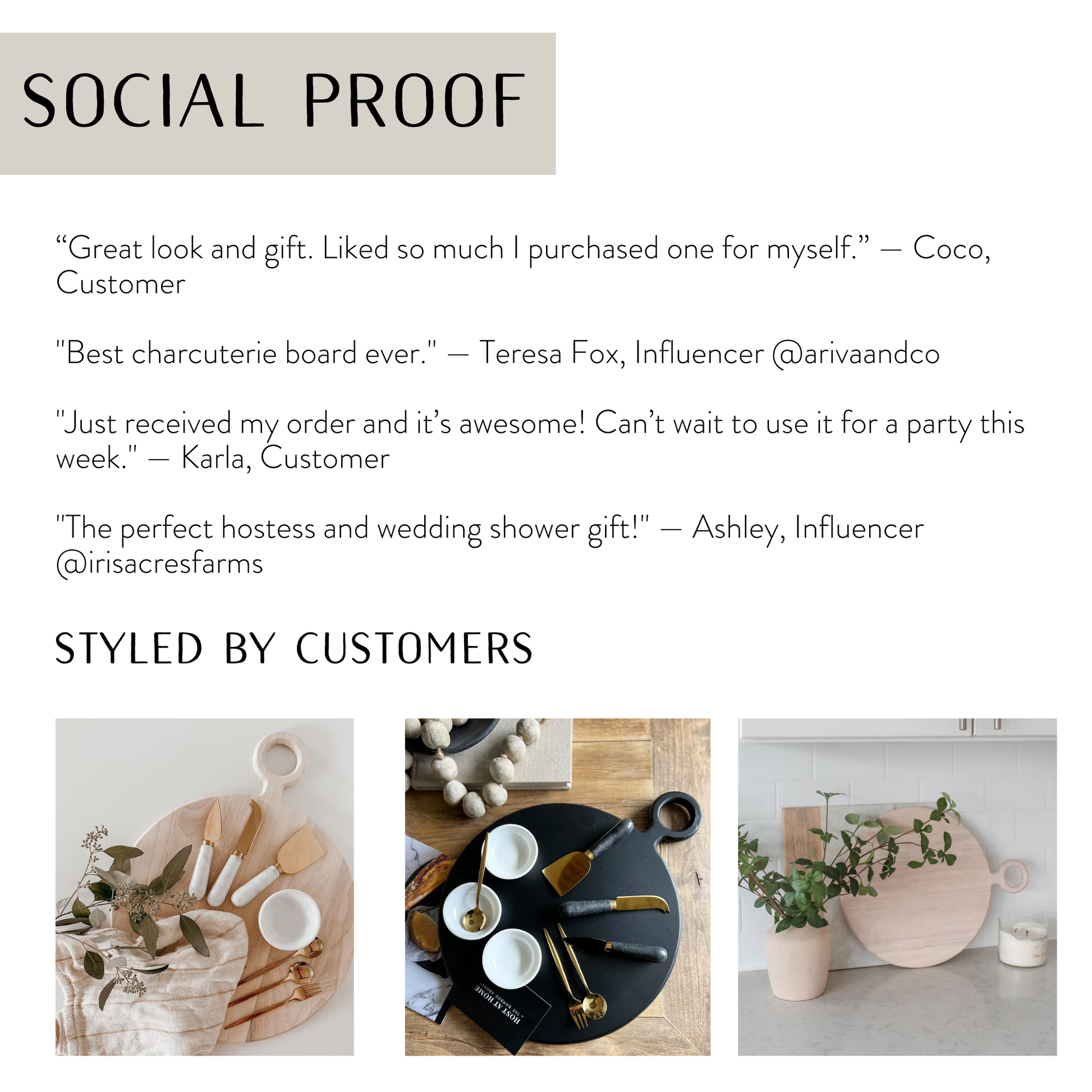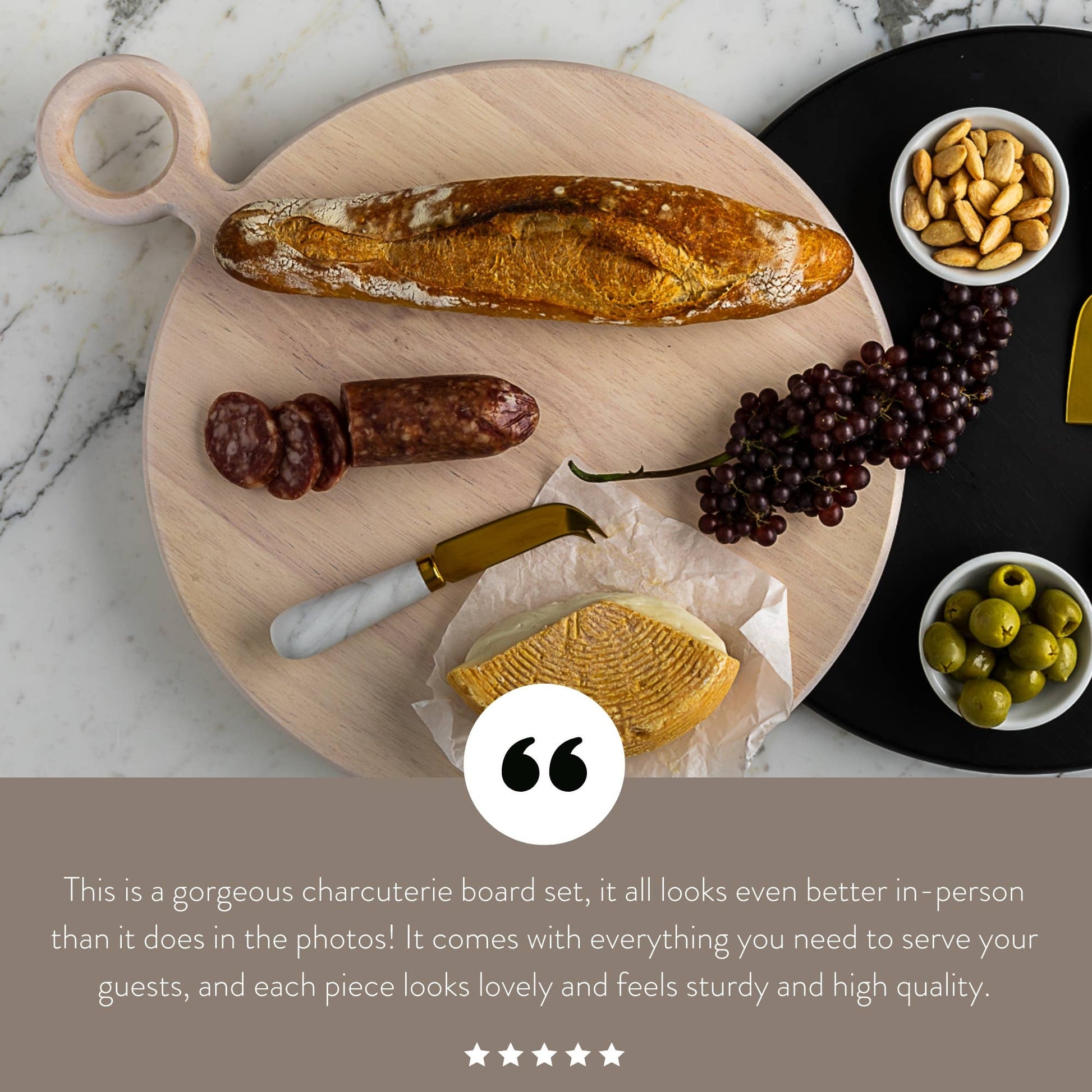 Charcuterie boards and cheese knives are traditionally sold separately. When packaged together, they often don't include dipping bowls and serving utensils and prioritize function over form. Our 10 Piece Charcuterie Board Set was designed to solve this problem. Customers can now get an expertly-curated, cohesive look.