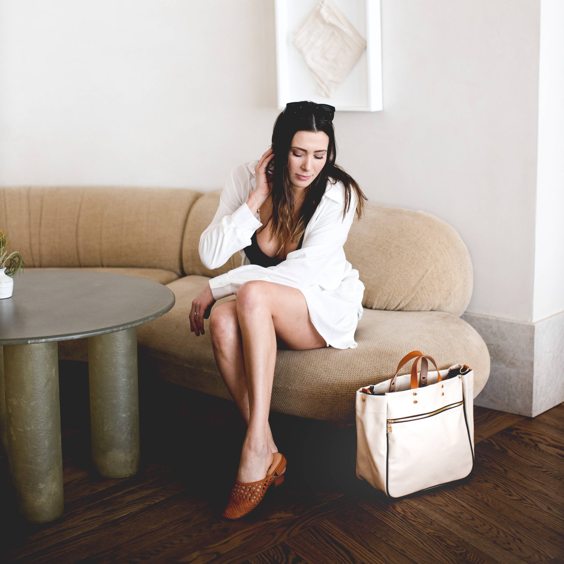One of our best sellers. This simple silhouette is a crowd favorite with all of its user friendly compartments.