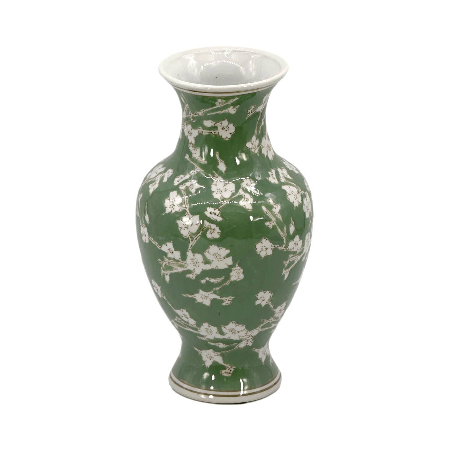 Green Sakura Chinoiserie Ceramic Vase 14"