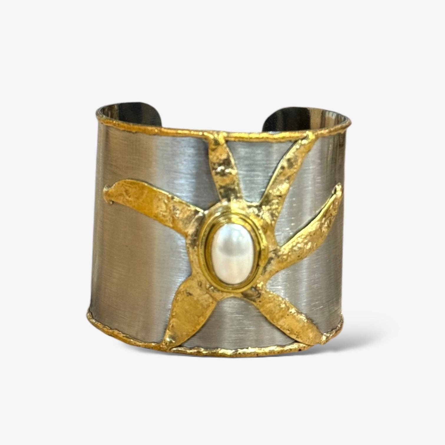 A perfect beach accessory, the Huda cuff with pearl is perfect for adding some fun to your outfit.