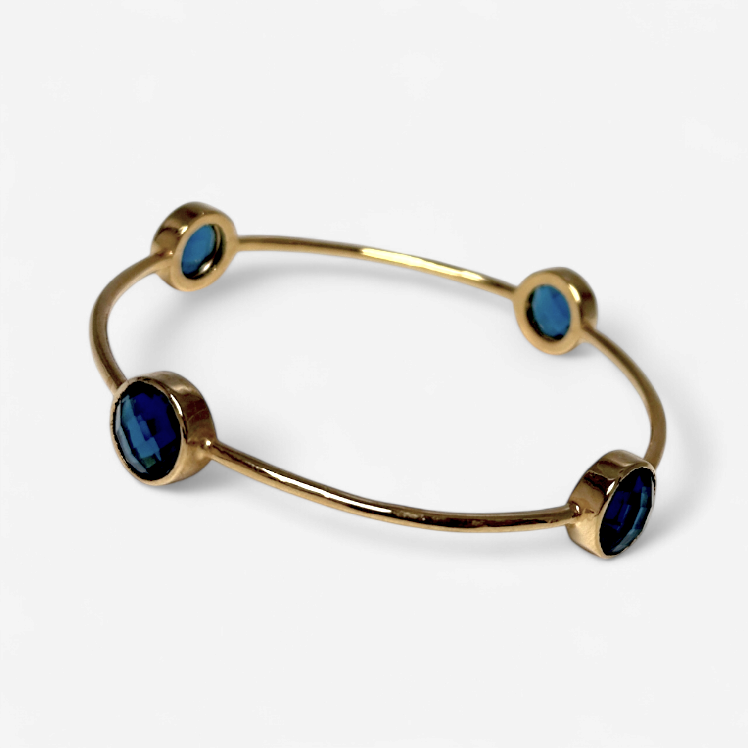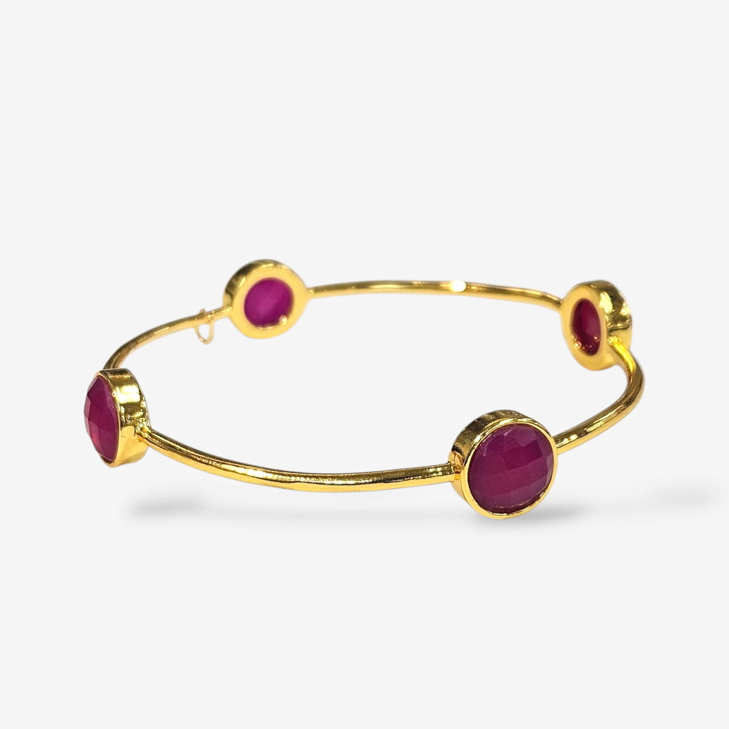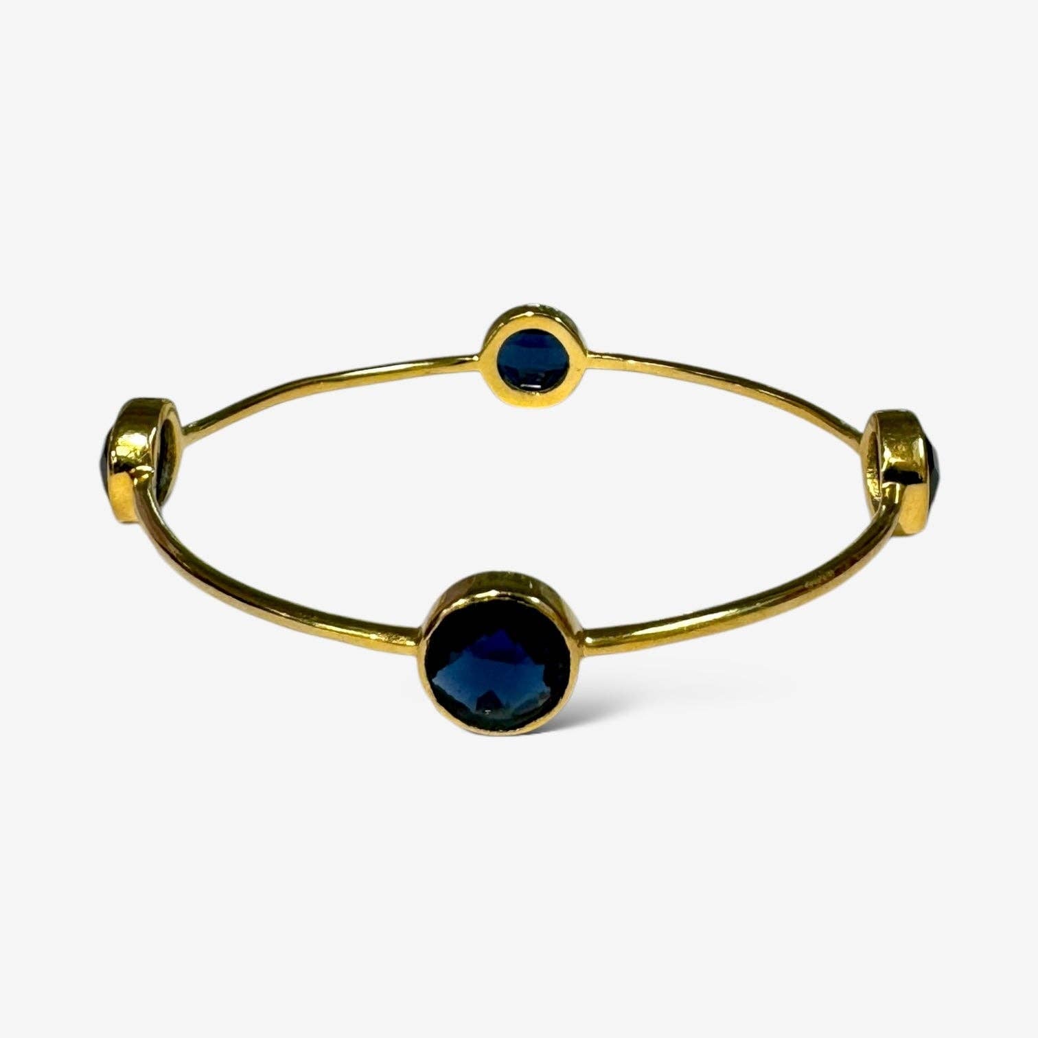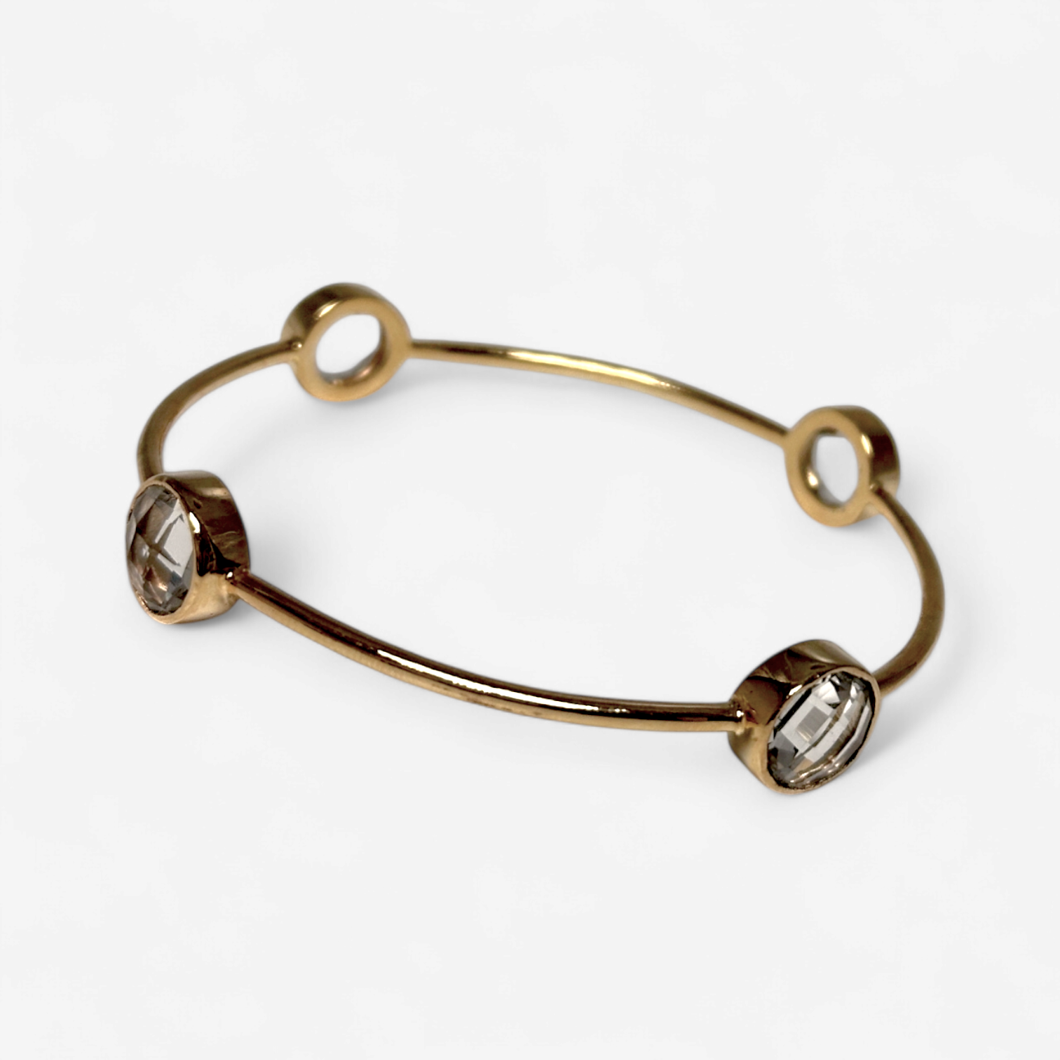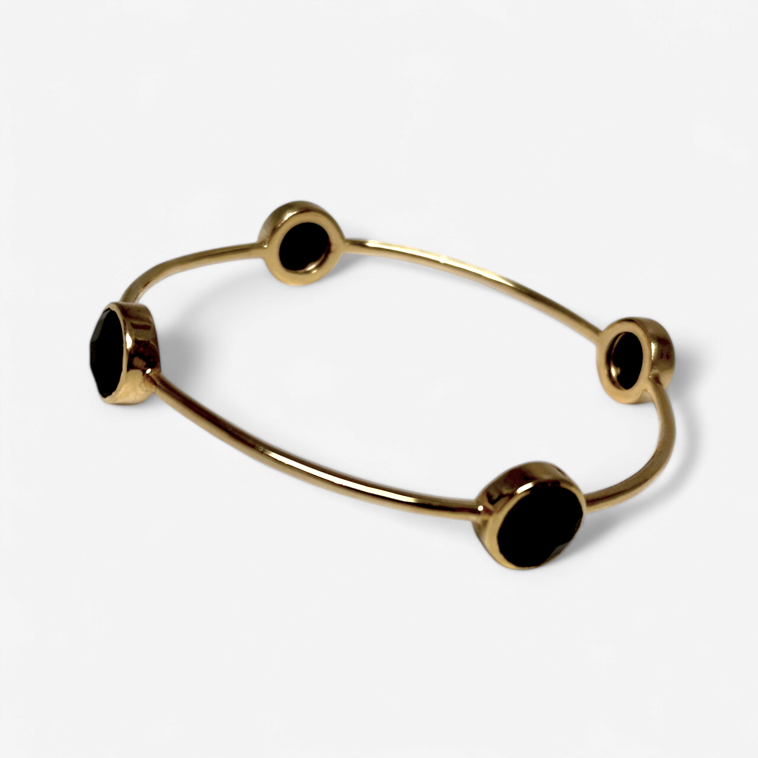This elegant Hydro Twist brass bracelet features a 14kt gold plating, adding a luxurious finish to the design. It is adorned with four round hydroquartz stones, each carefully set to surround the bracelet with their radiant, translucent glow. The combination of warm gold tones and the subtle sparkle of the stones creates a sophisticated and timeless accessory, perfect for any occasion.