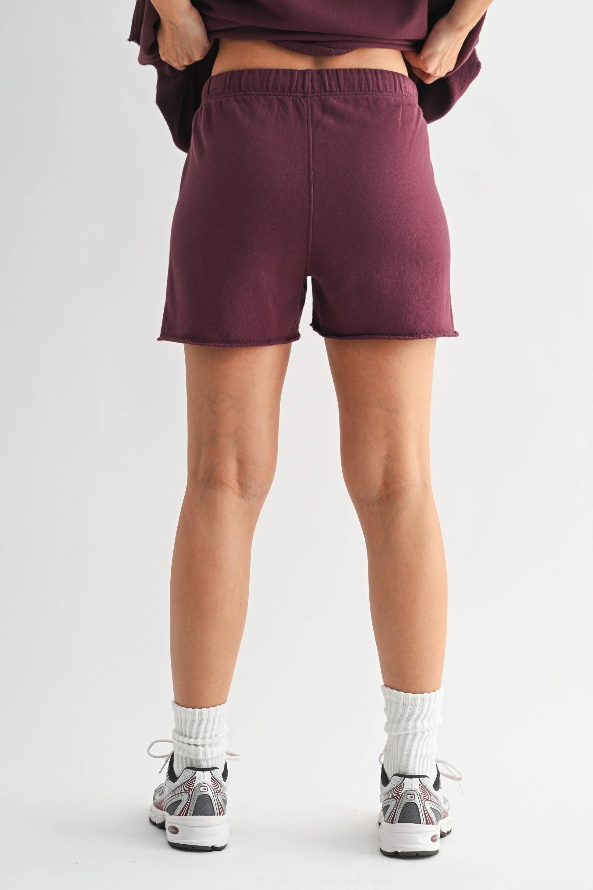 High-rise shorts made from durable 100% cotton for coverage and warmth. No side seams for a flattering fit. Features a comfy drawstring waist and raw-edge hem, perfect for effortless style and comfort. Ideal for everyday wear!