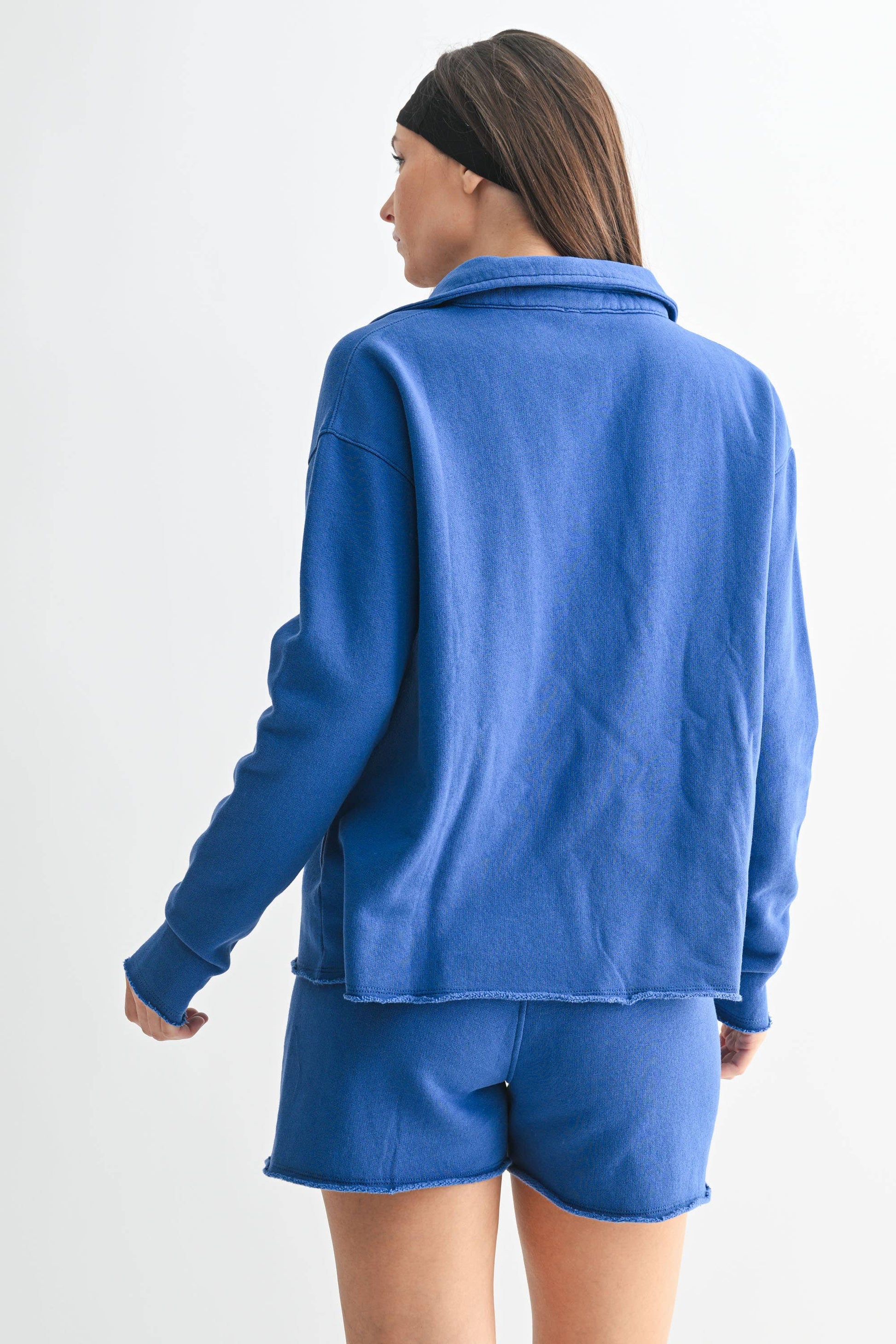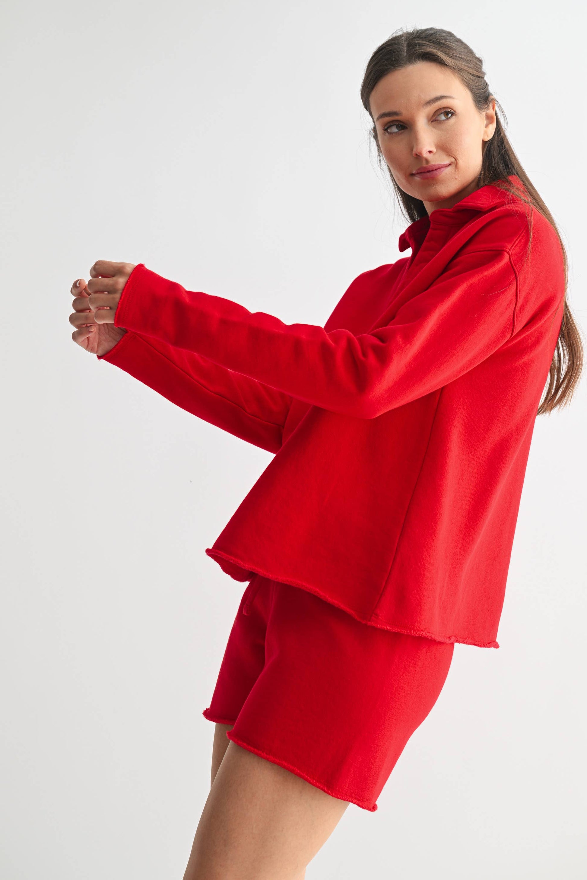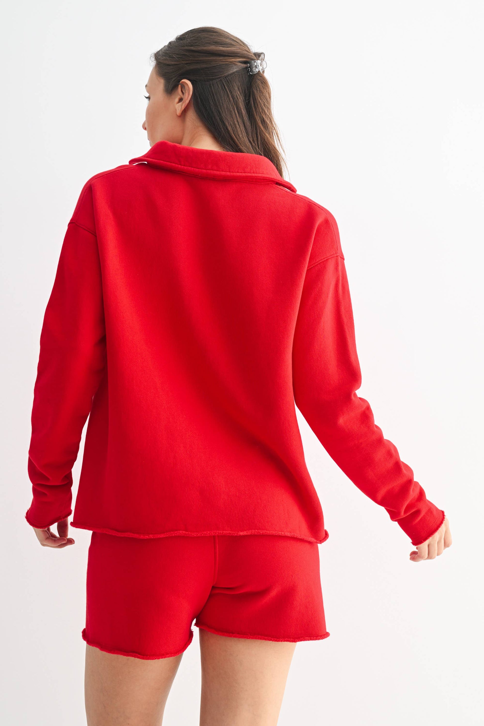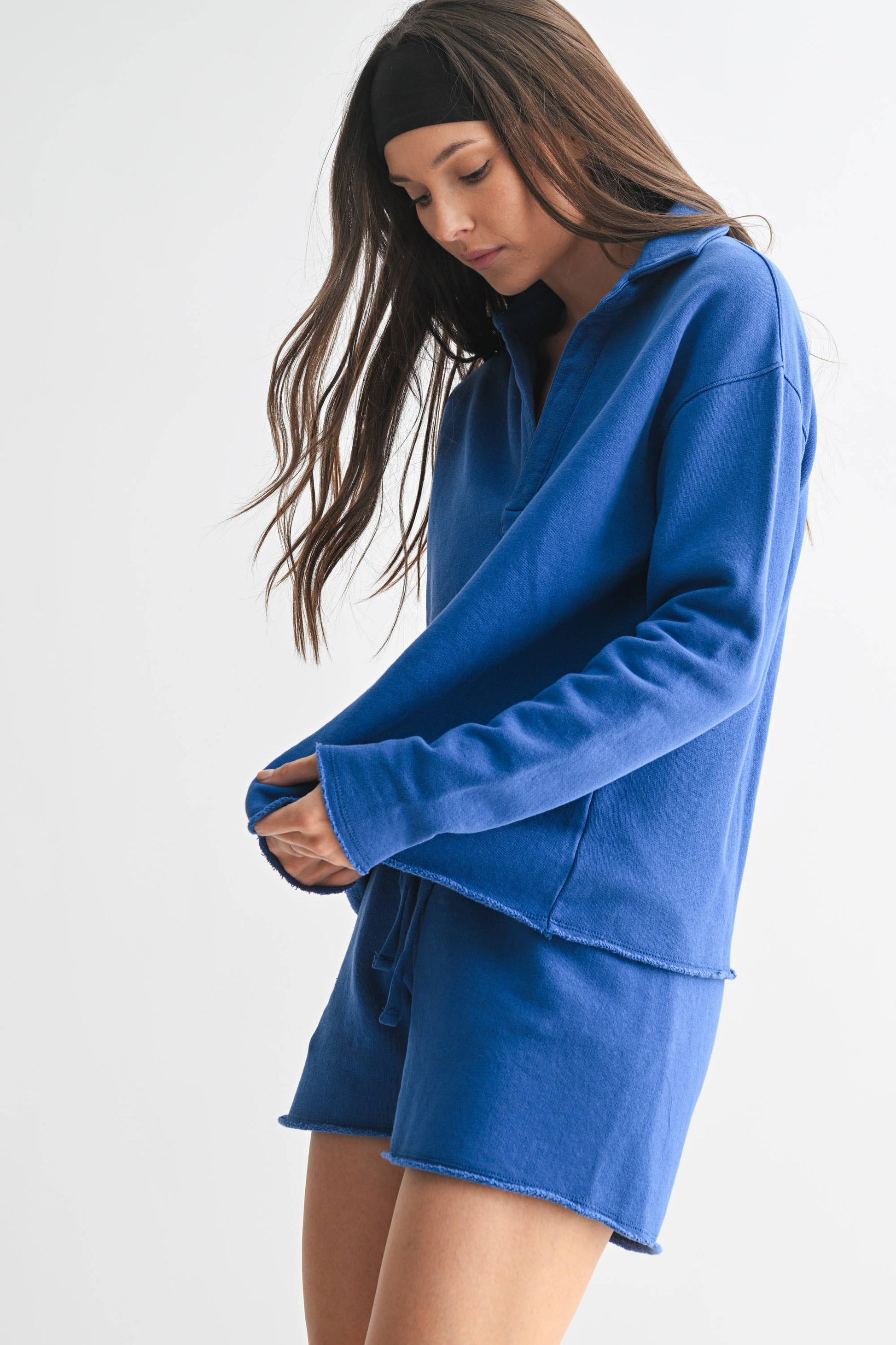 Henley-style long sleeve with a V-neck and raw-edge hem for a vintage look. Perfect for brunch or lunch, this versatile tee pairs effortlessly with denim for a casual yet polished vibe!