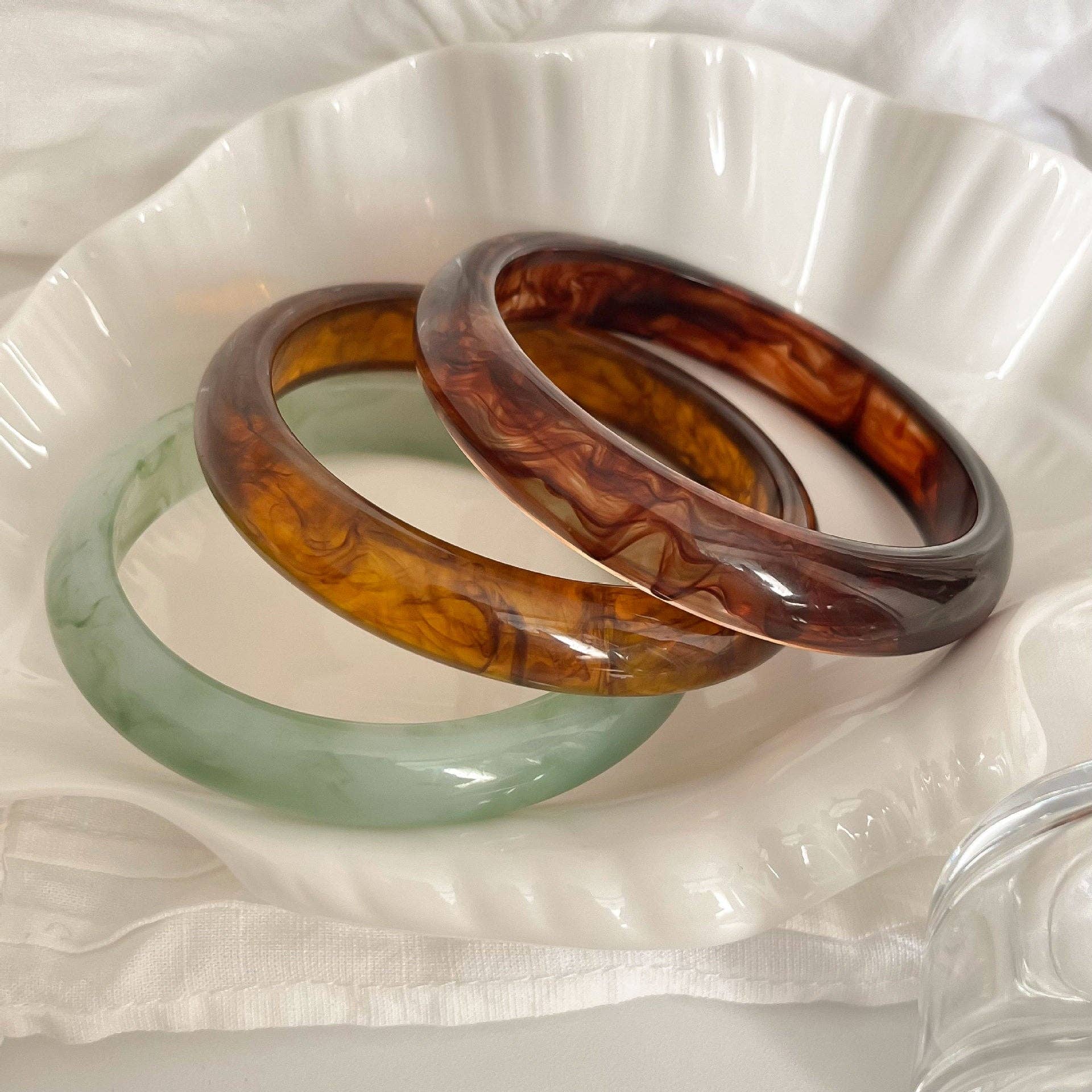 Minimalist Marbled Round Resin Bangle Bracelet DP25D727