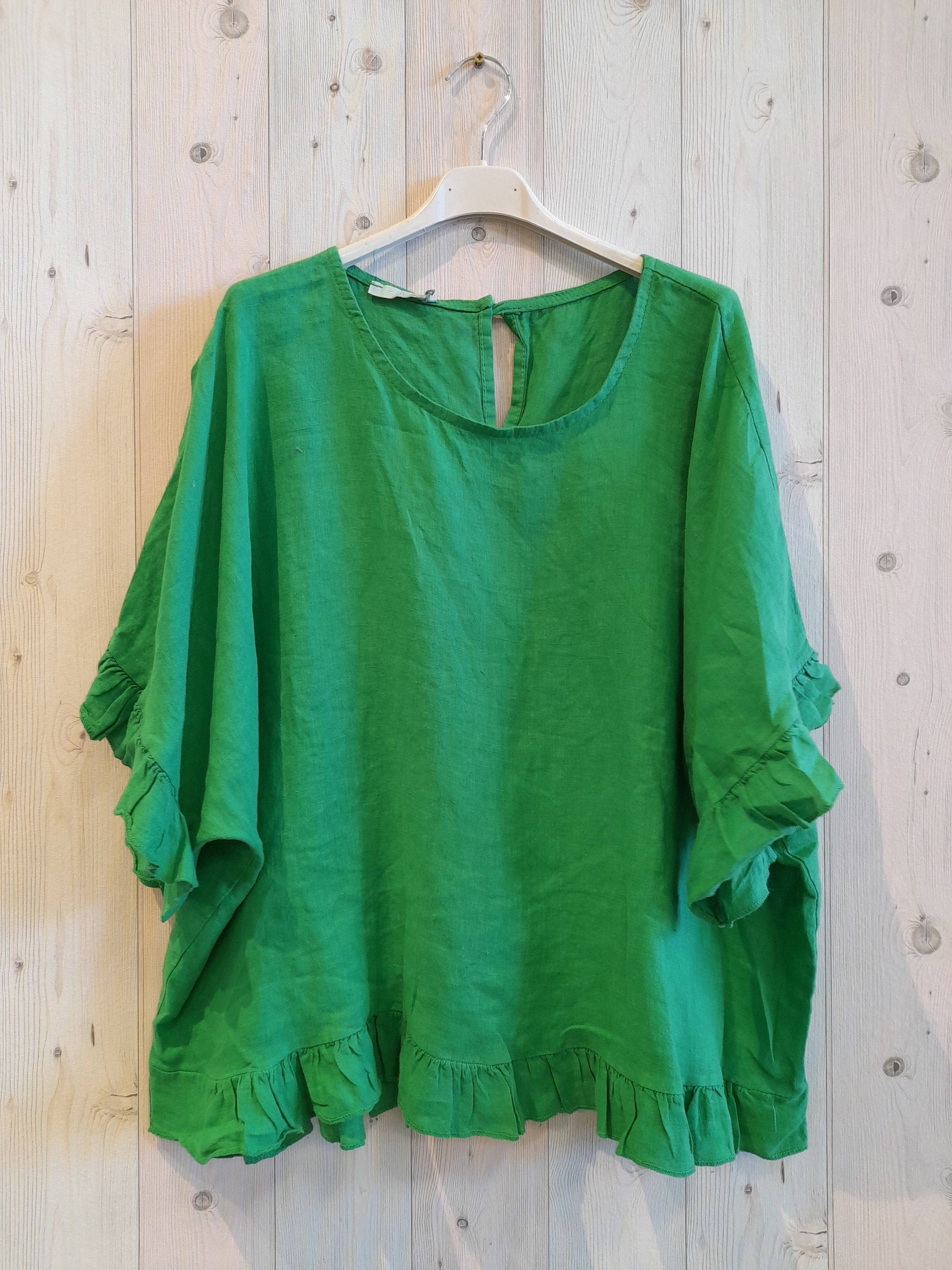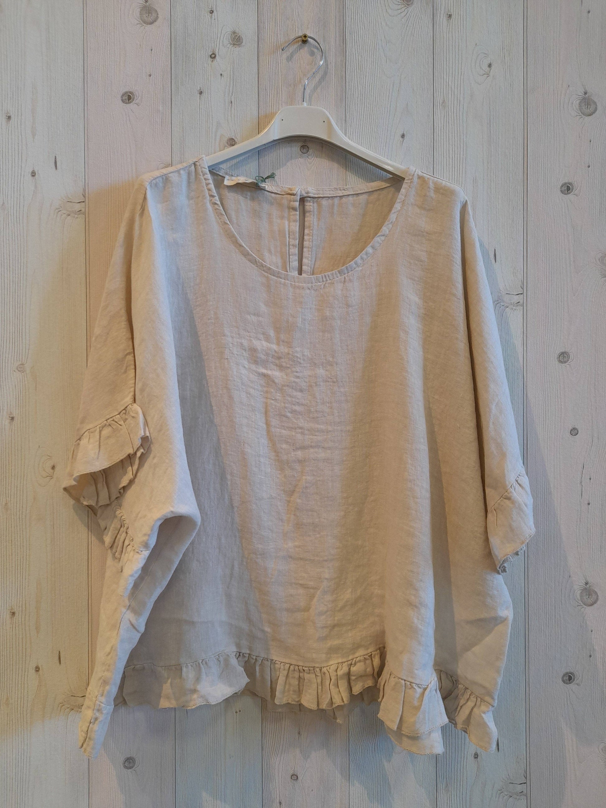 RUFFLE BLOUSE COMPOSITION 100% LINEN MEASURED IN LENGTH 62CM AND WIDTH 82CM APPROX