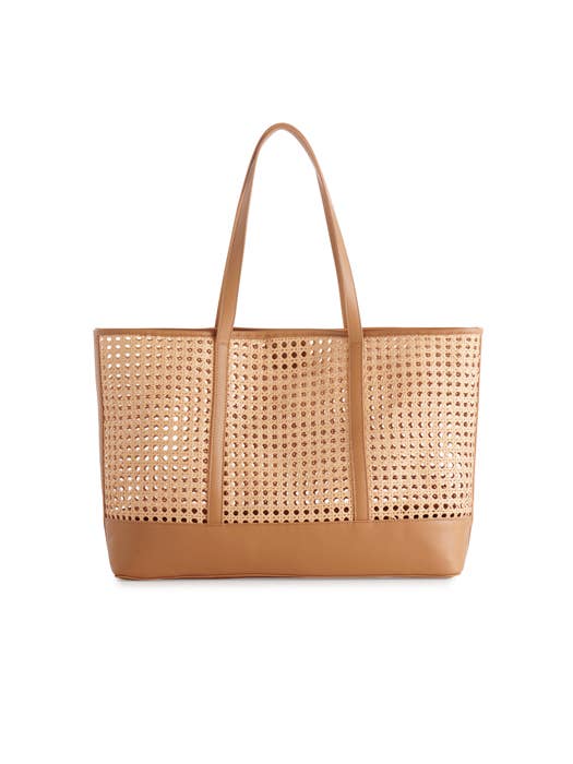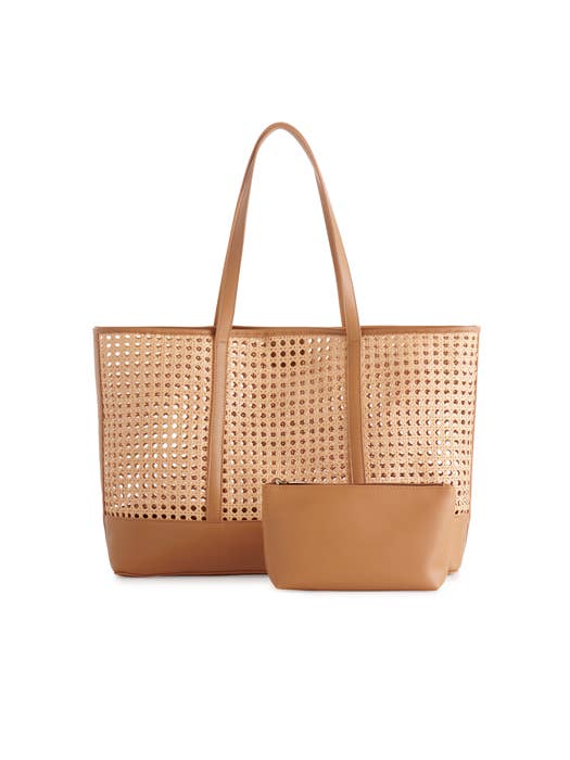 Polyethylene and Pu; Double Shoulder Straps; Magnetic Snap Closure; Removable Zip Pouch. Meet The Soleil Tote – Your Go-To Bag For Sunny Adventures and Everyday Chic. With Its Airy, Open-Weave Cane Design and Vegan Leather Accents, This Tote Combines Breezy Sophistication With Practical Charm. Spacious Enough To Carry All Your Essentials (and Then Some), It Even Comes With A Matching Removable Pouch To Keep Smaller Items Tidy. Whether You’Re Beach-Bound Or City-Hopping, The Soleil Tote Ensures You Do It In Effortless Style.