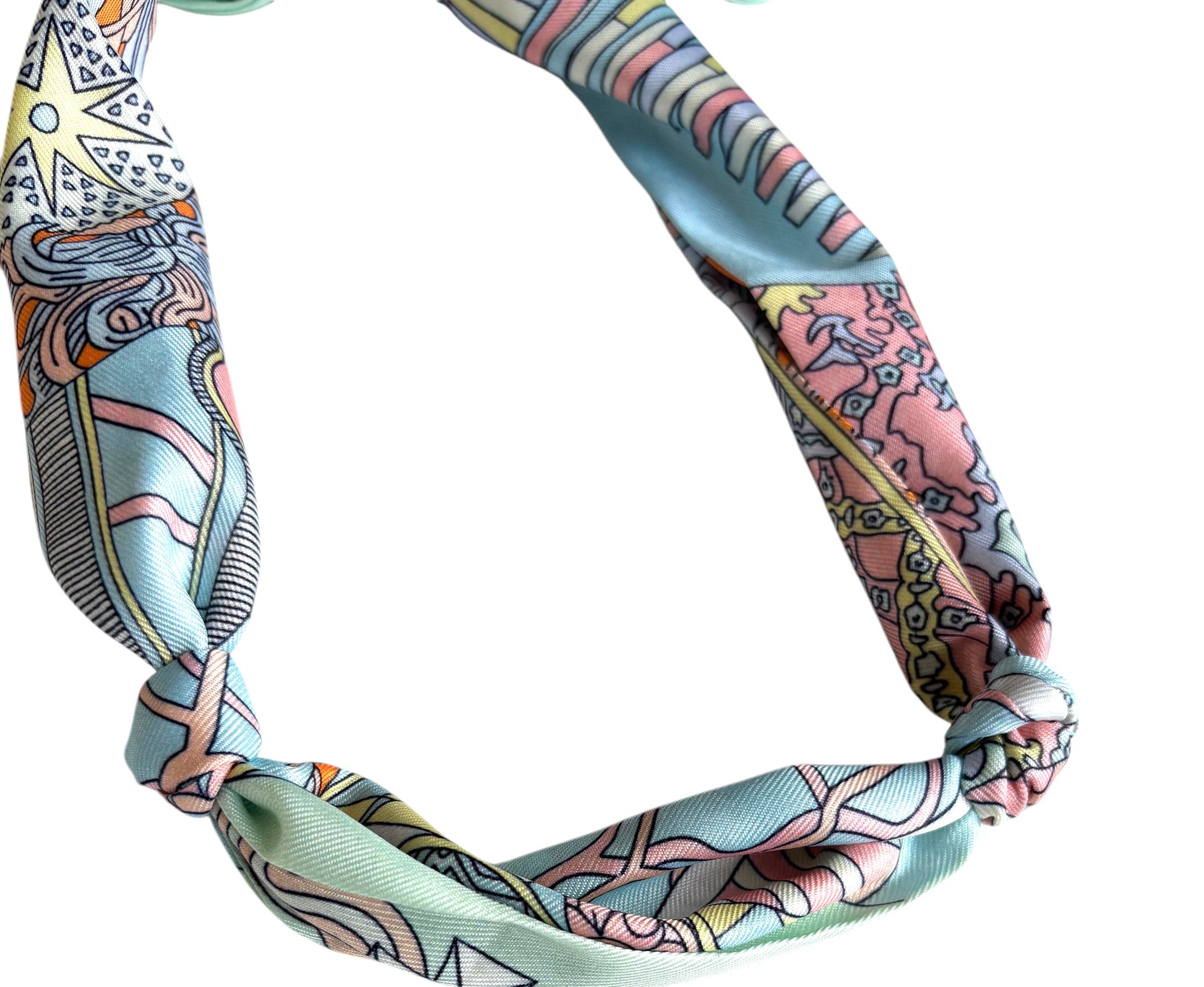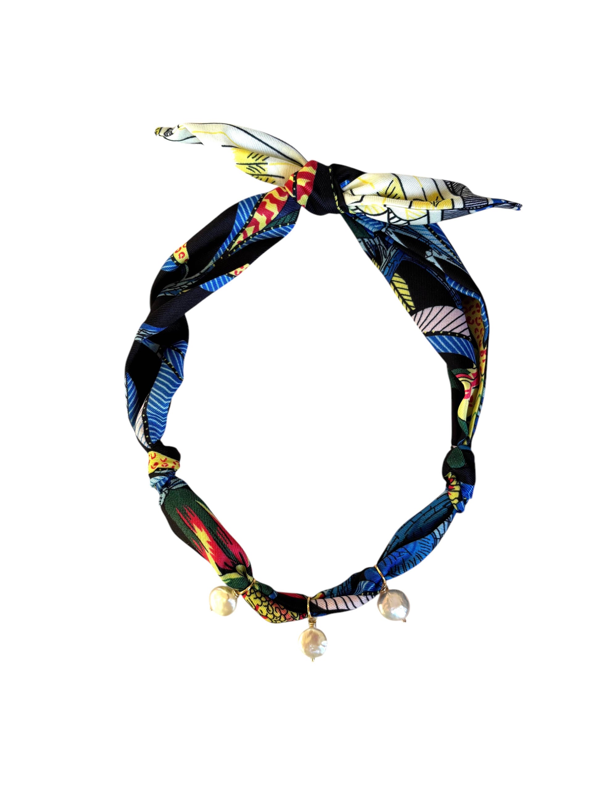 Classic freshwater coin pearls on our satin scarf necklace in your choice of prints.