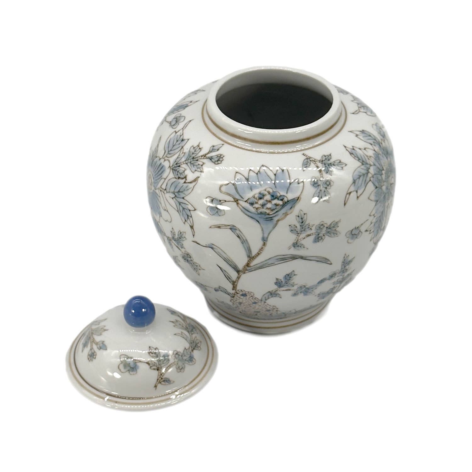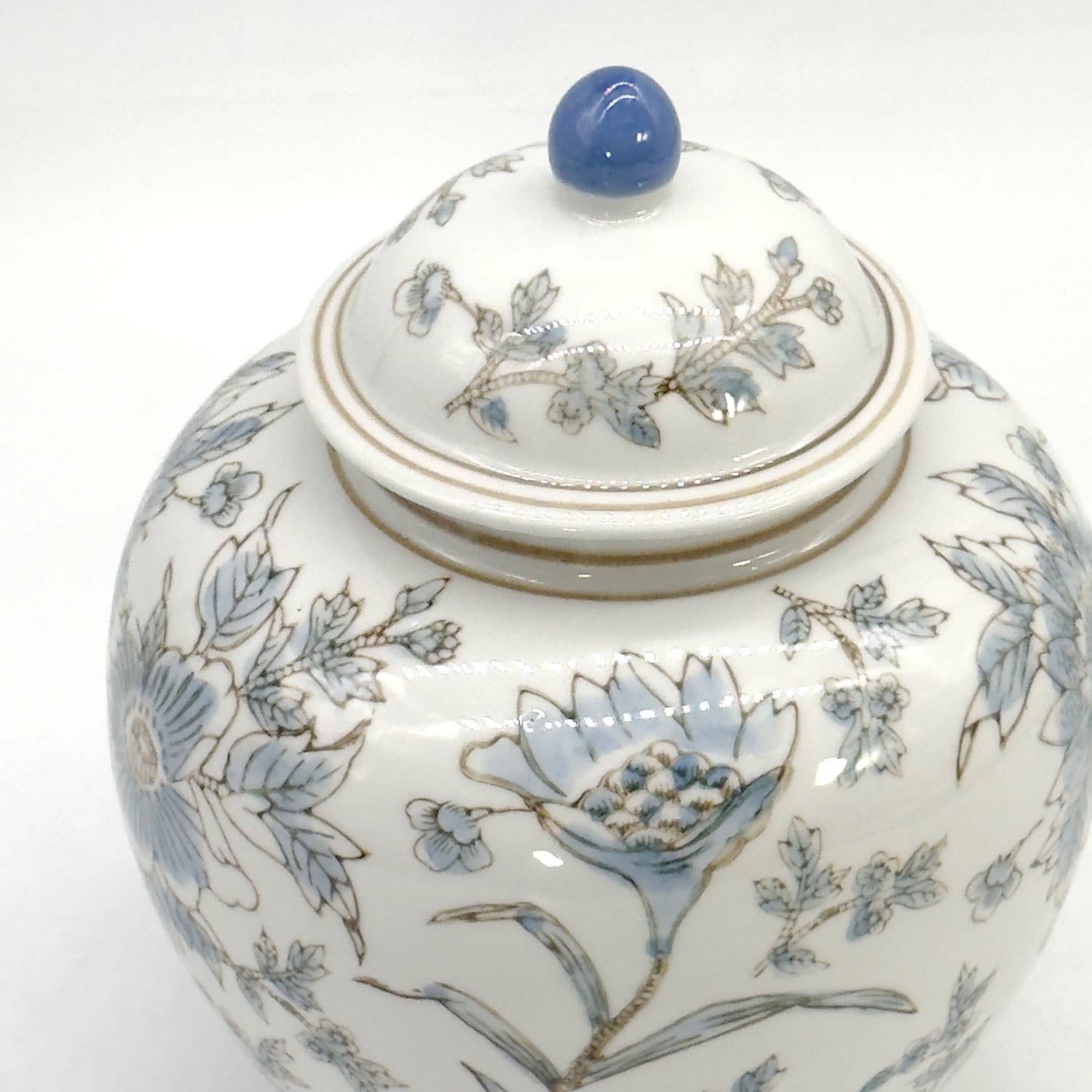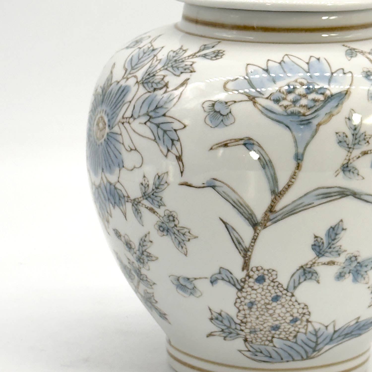White & Blue Ceramic Chinoiserie Floral Jar 10"